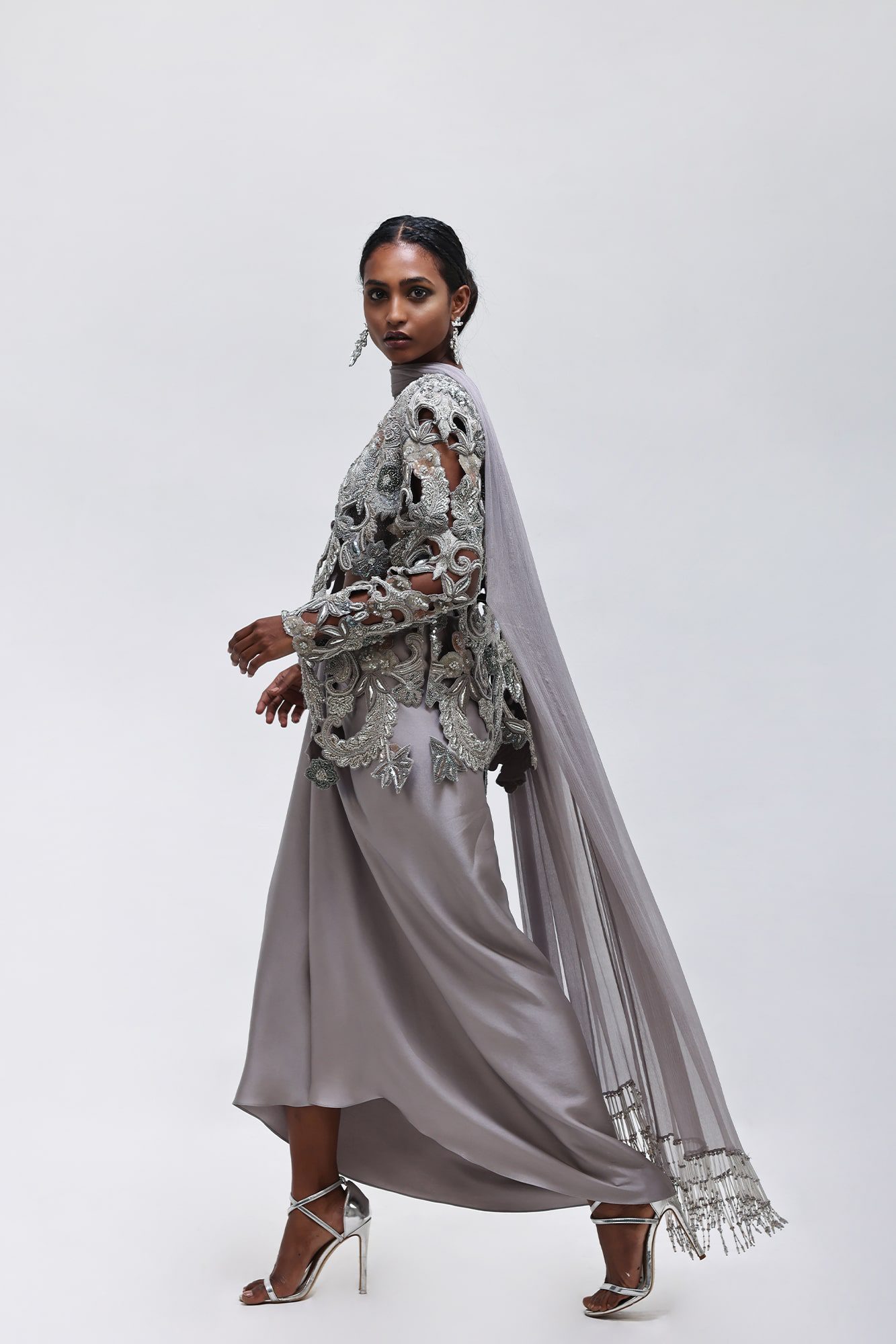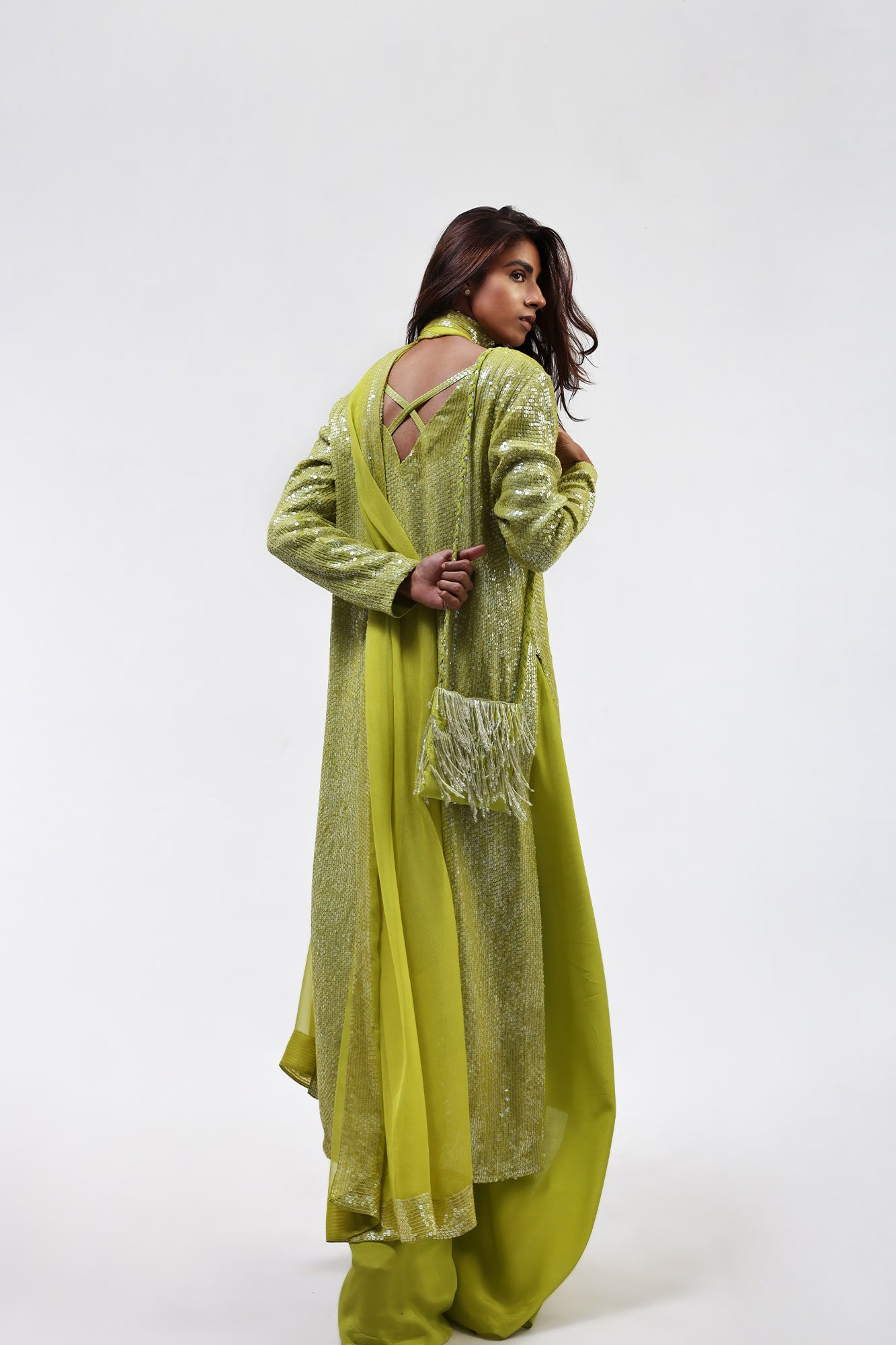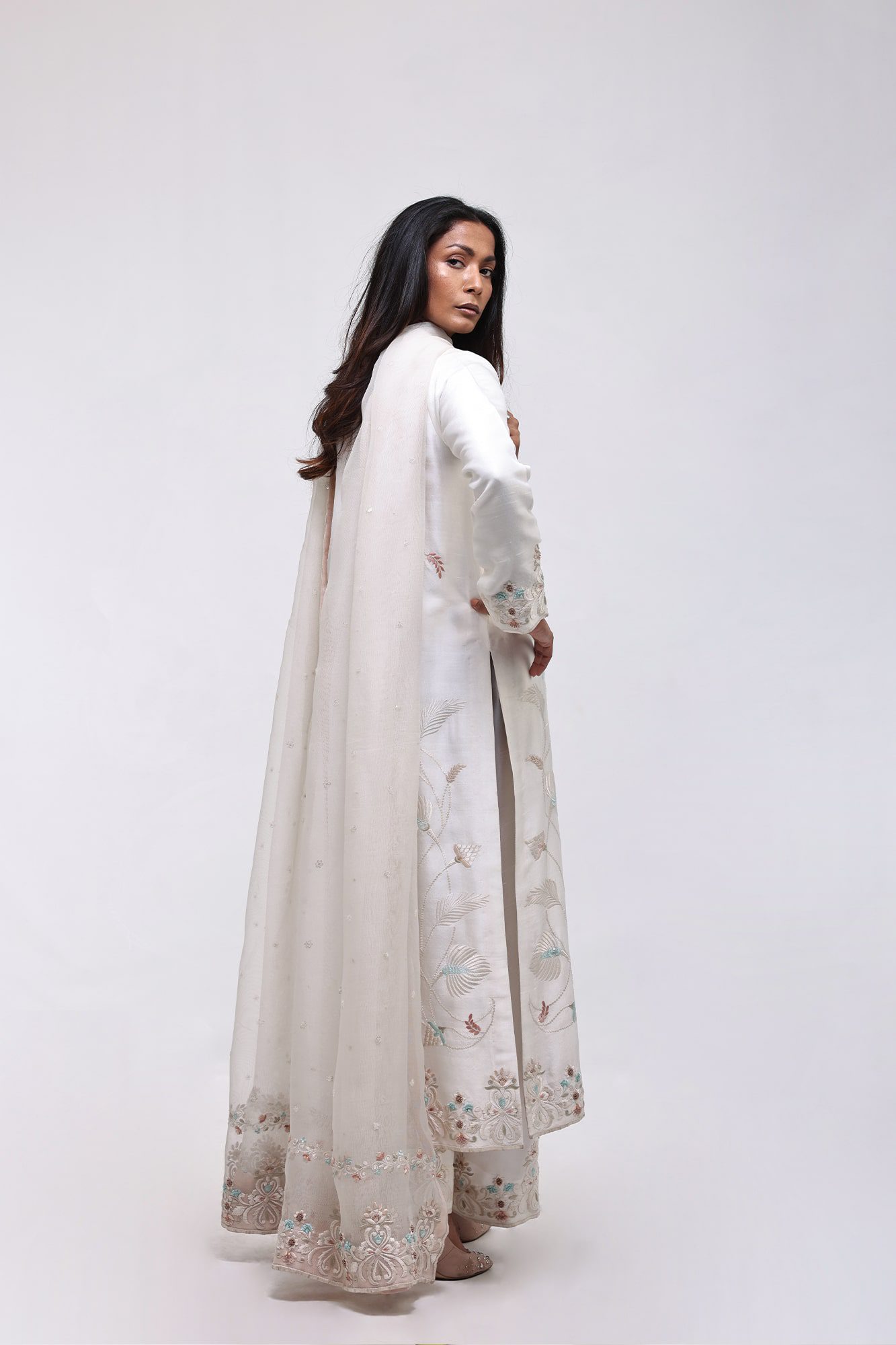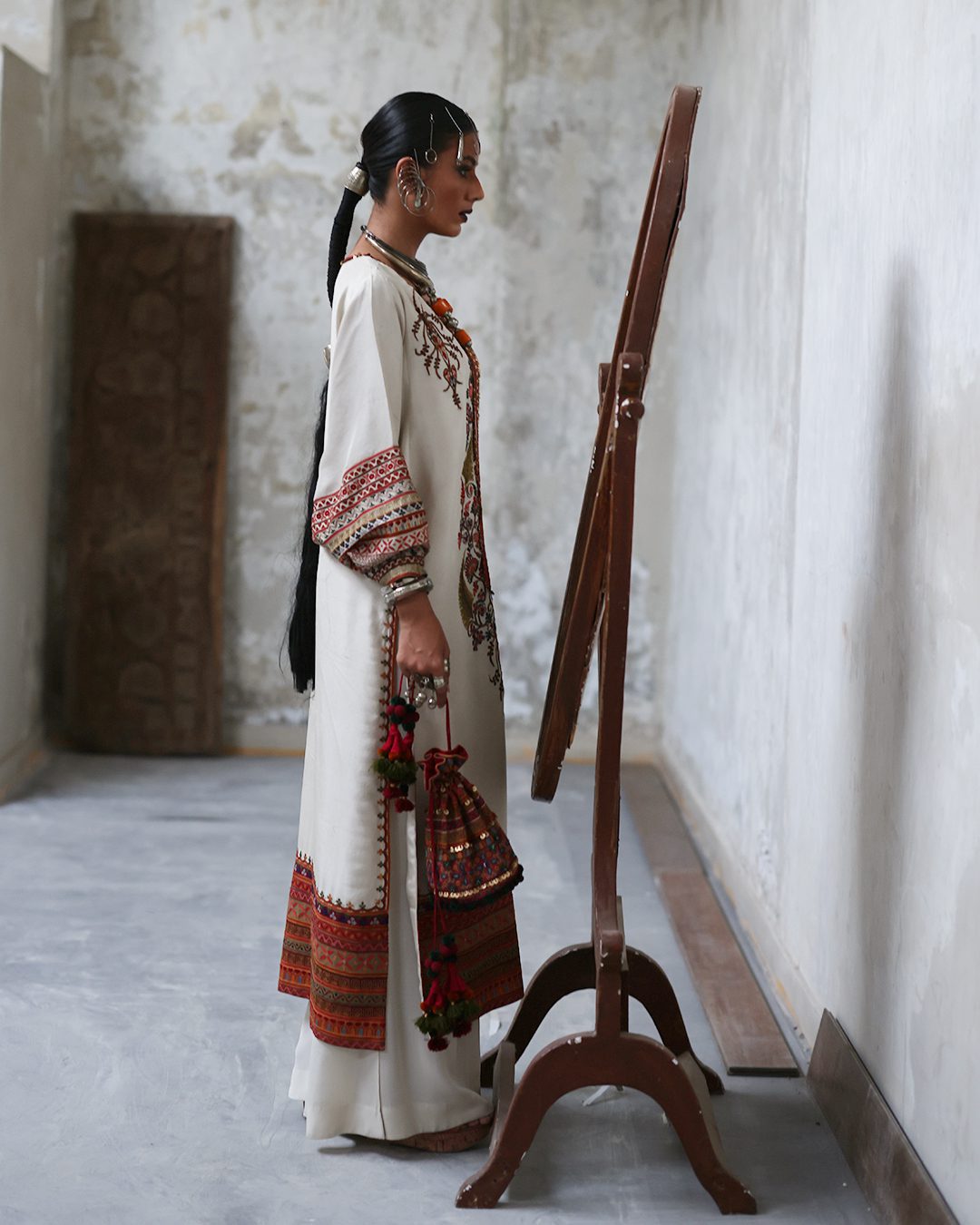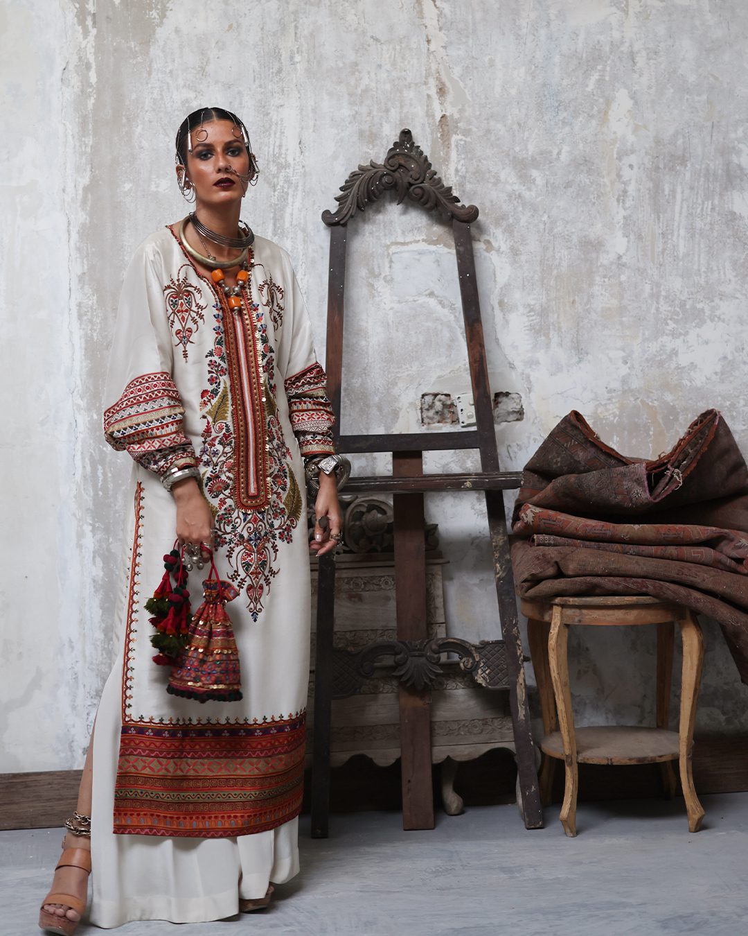 kaftan: pure raw silk, flared flowy pants: pure crepe