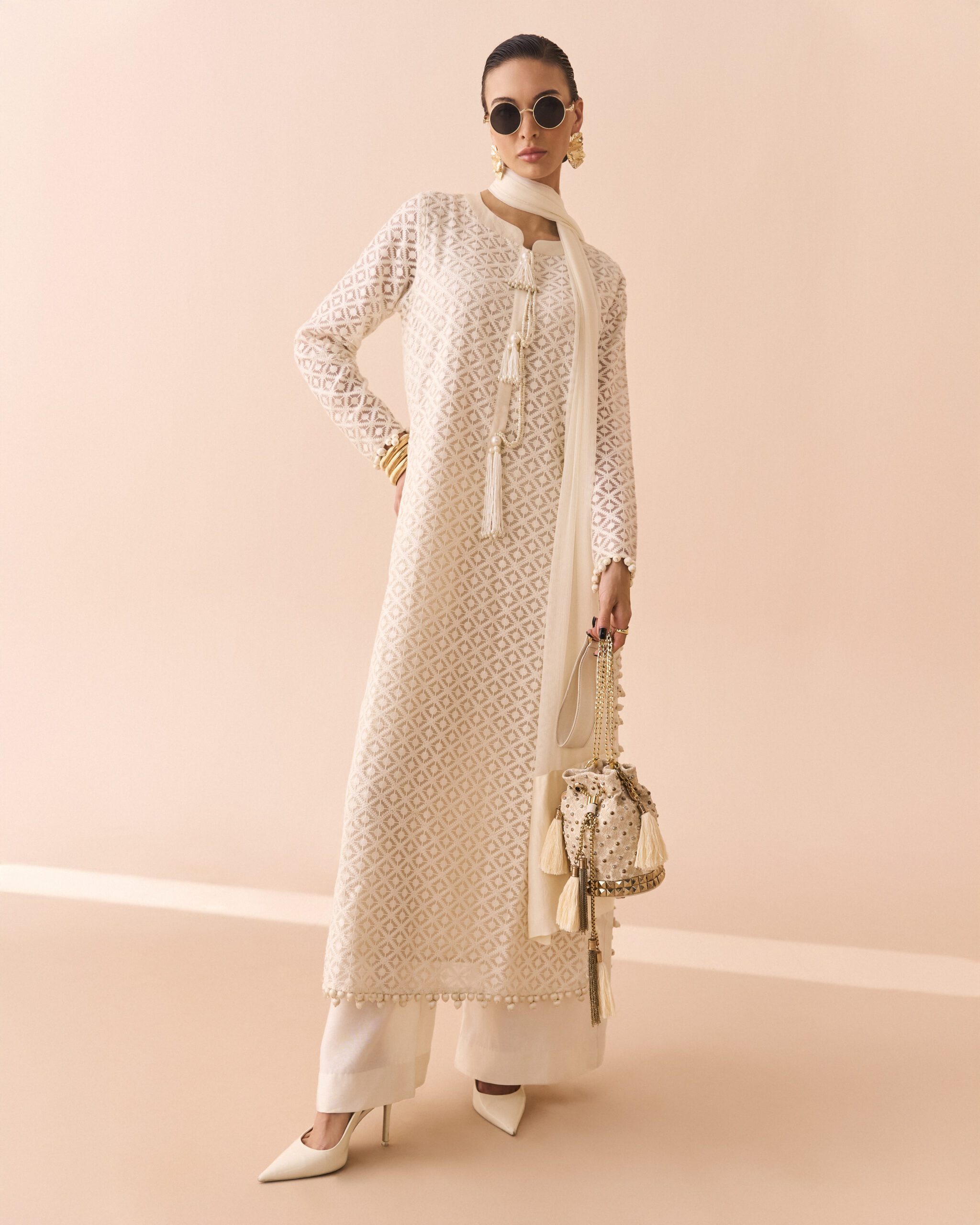 dupatta: pure ivory crinkle chiffon with ivory silk border