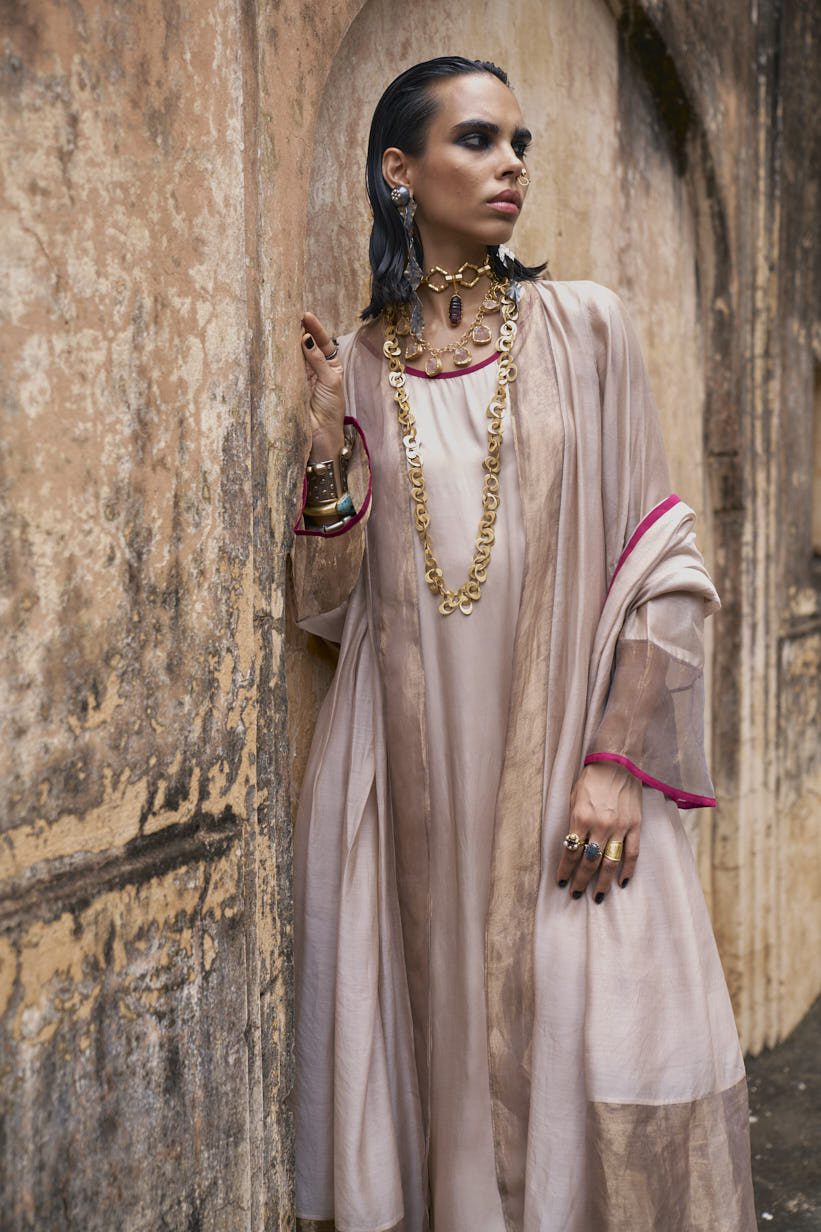 Jacket: Dusty pink pure cotton silk jacket with pure tissue silk finishing