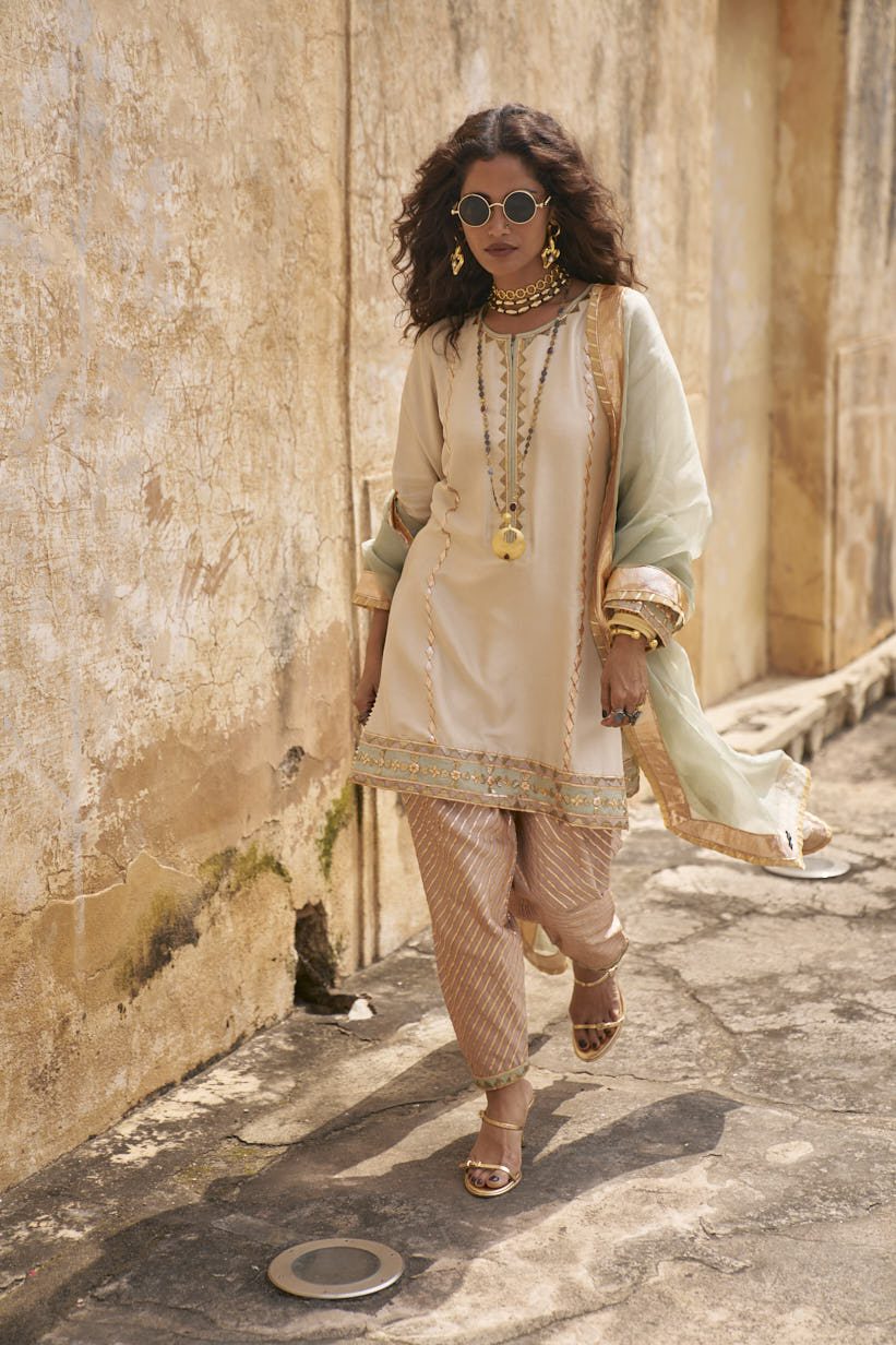 Bottom: Dusty pink pure raw silk shalwar with gota lines
