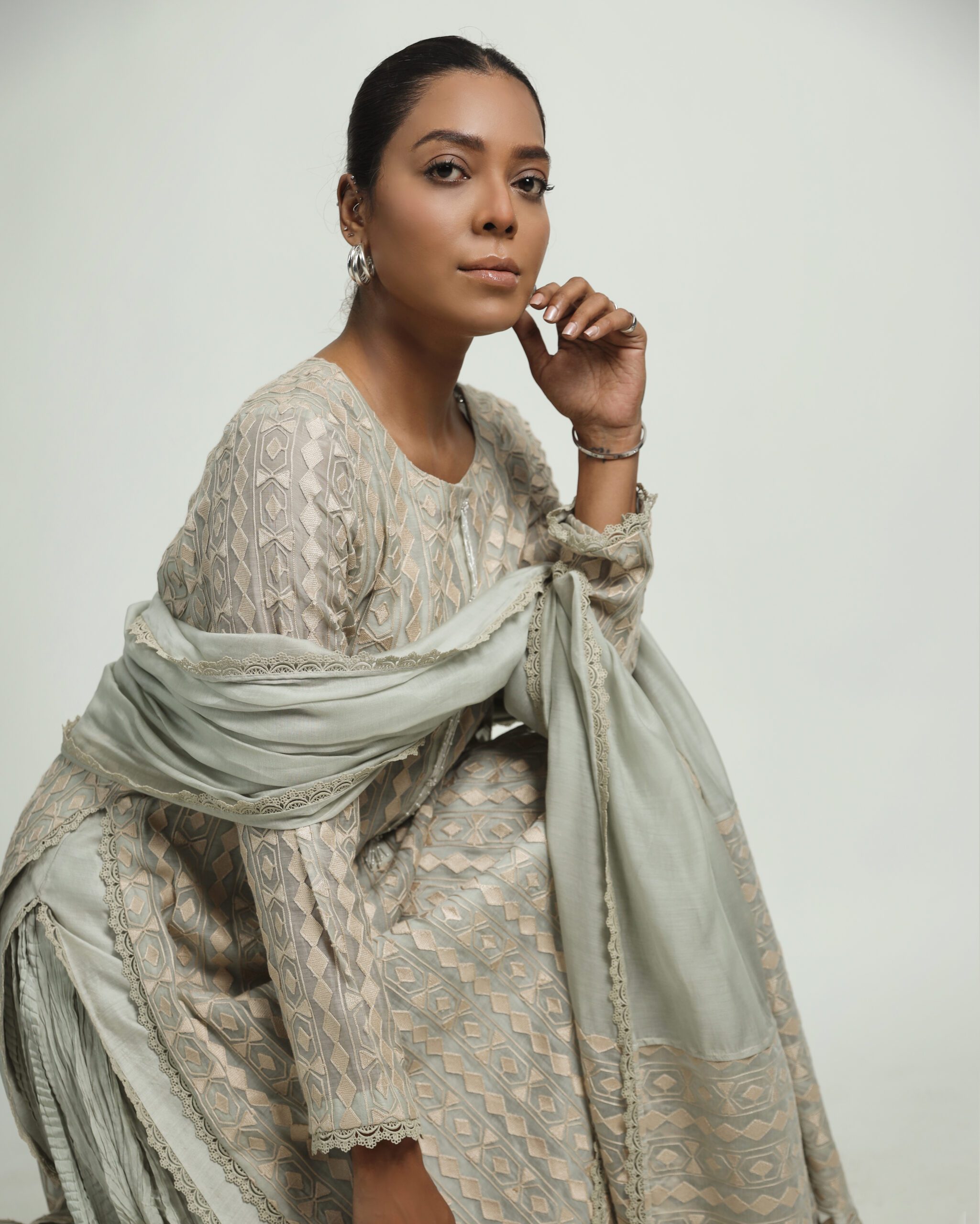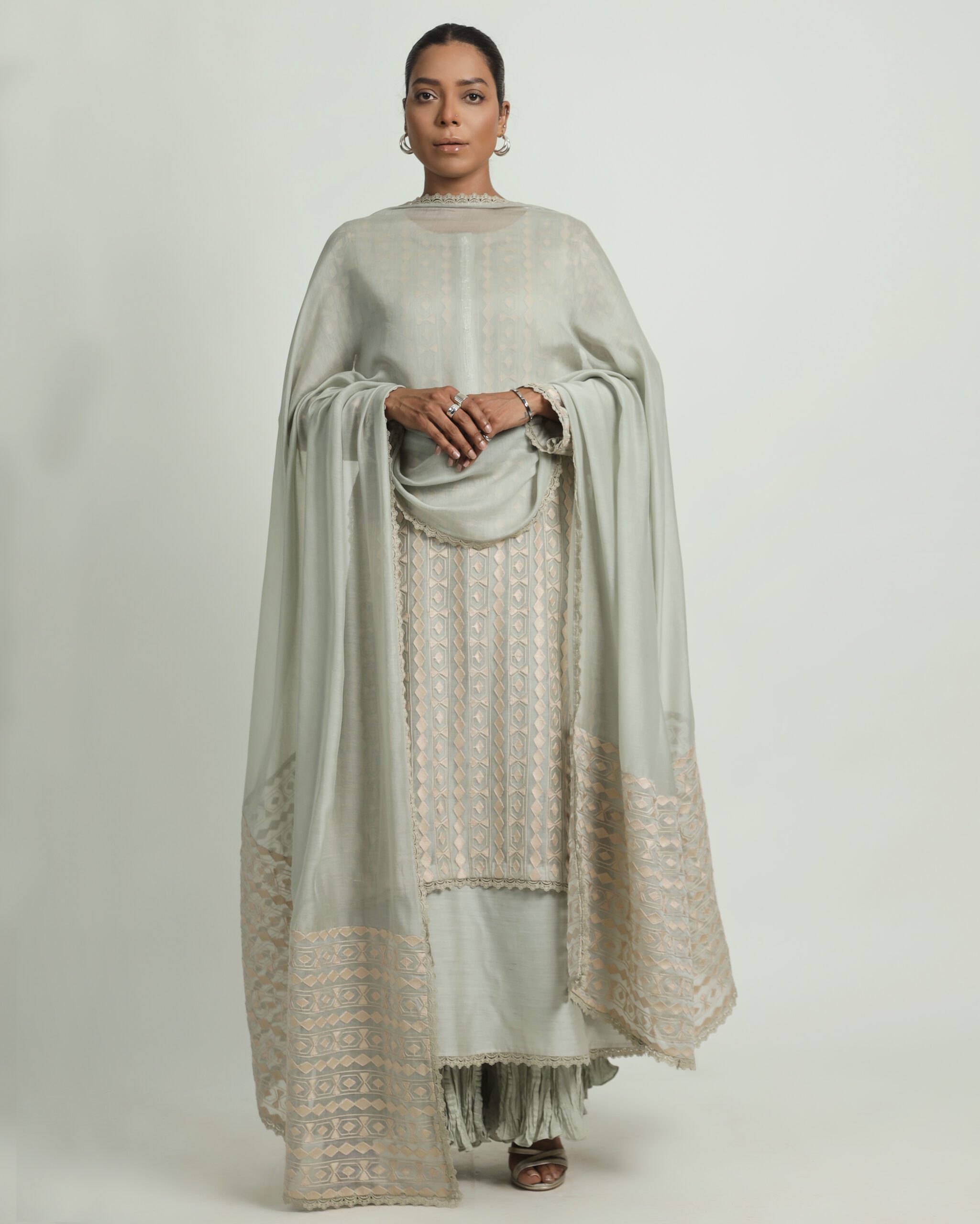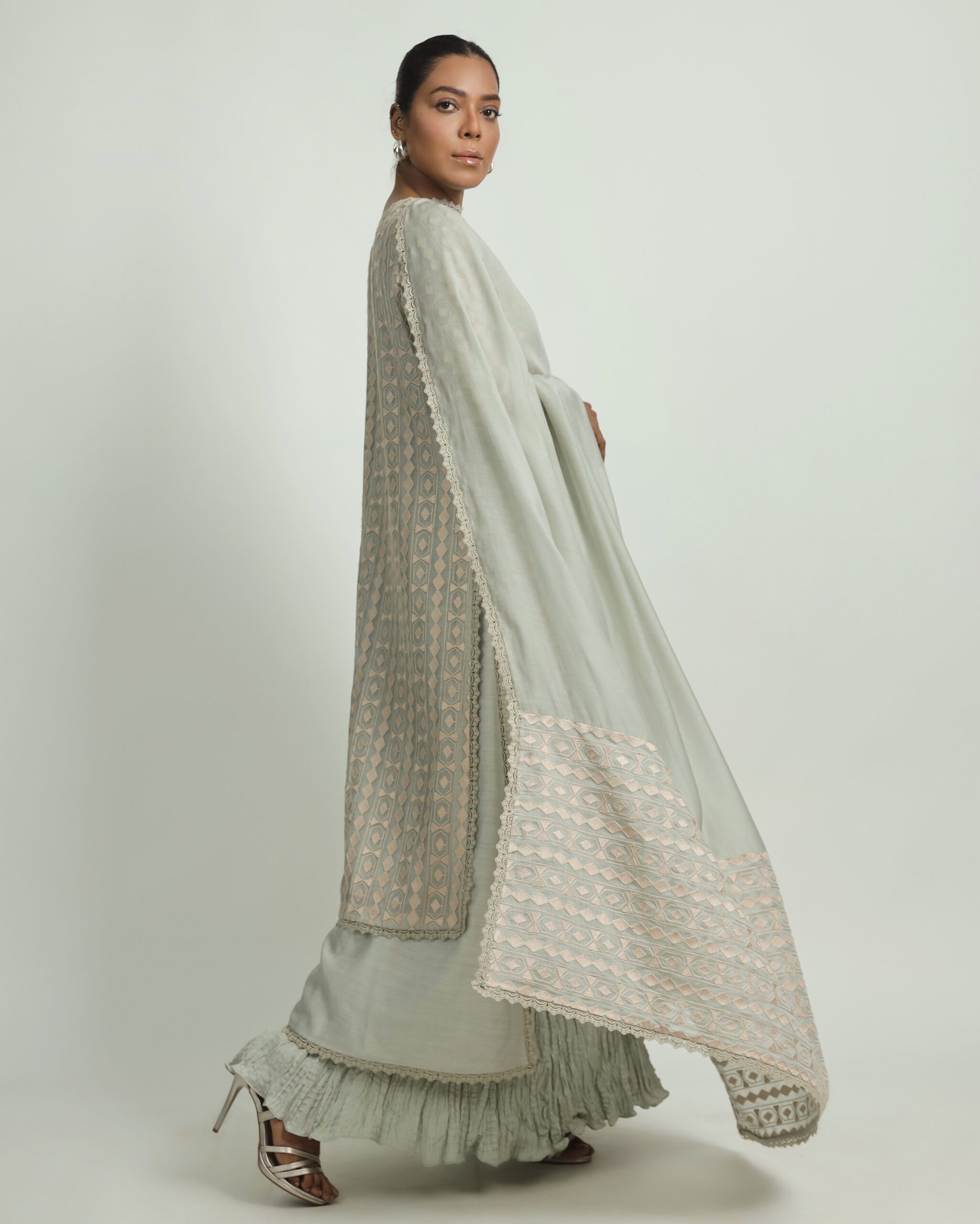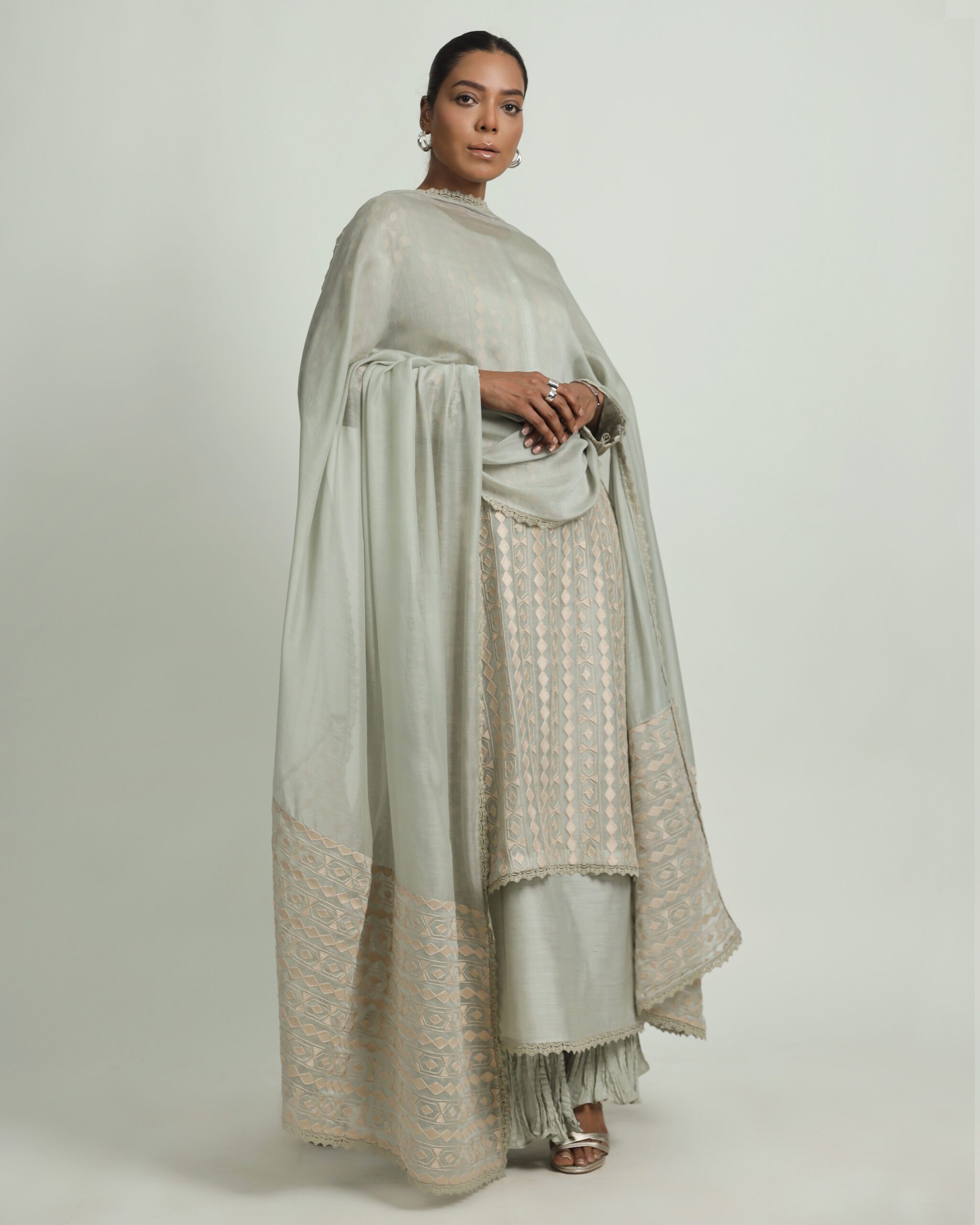 Mint green dupatta with heavy border and lace finishing Plain crushed dhaka pajama